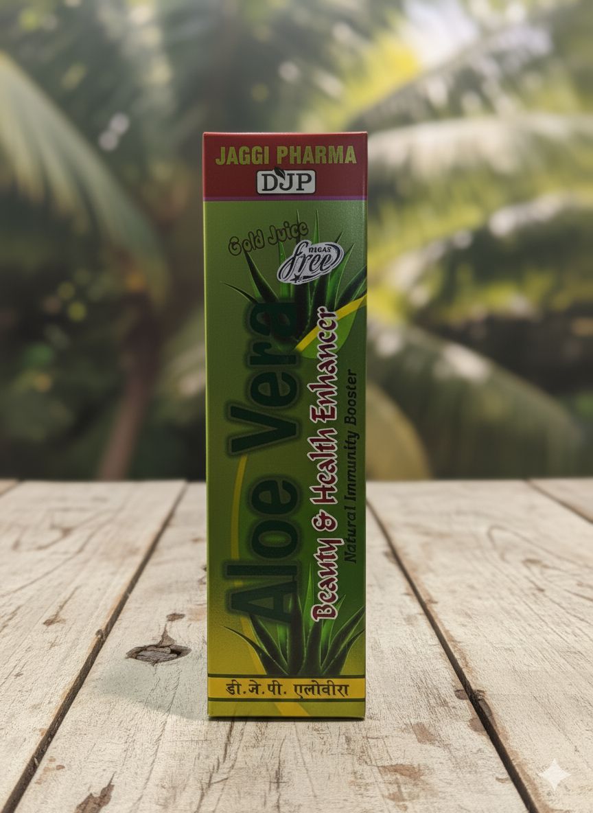 Jaggi Pharma Aloe Vera Juice is made from fresh, natural aloe vera leaves, carefully processed to retain maximum nutrition. Aloe vera is well-known in Ayurveda for its healing, detoxifying, and rejuvenating properties.