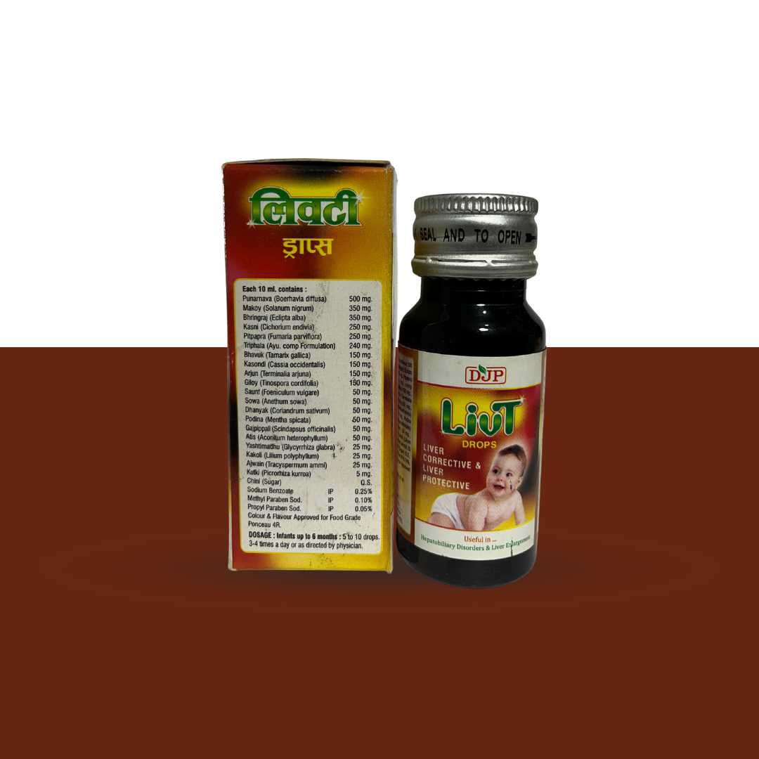 Livit Drops is a specially formulated Ayurvedic liver tonic for infants & children. It helps in correcting liver functions, improving digestion, and enhancing appetite. It is highly effective in conditions like liver enlargement, jaundice, indigestion, weak metabolism, and hepatobiliary disorders.