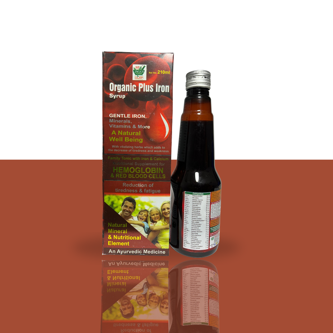 Organic Plus Iron Syrup is an Ayurvedic health supplement designed to naturally support hemoglobin levels and enhance red blood cell formation. Formulated with a blend of gentle iron, essential minerals, vitamins, and revitalizing herbs, it helps in combating anemia, weakness, and fatigue.